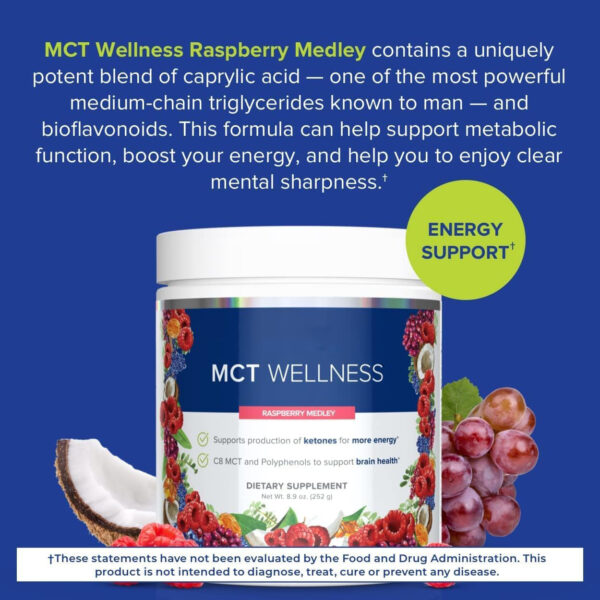 Wellness Powder to Support Energy, Ketone Production and Brain Health, Keto Friendly, Sugar Free (90 Day Supply, Raspberry Medley)
